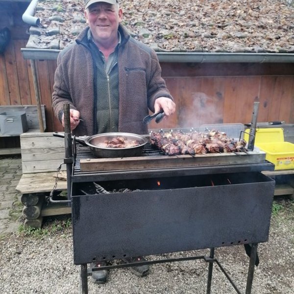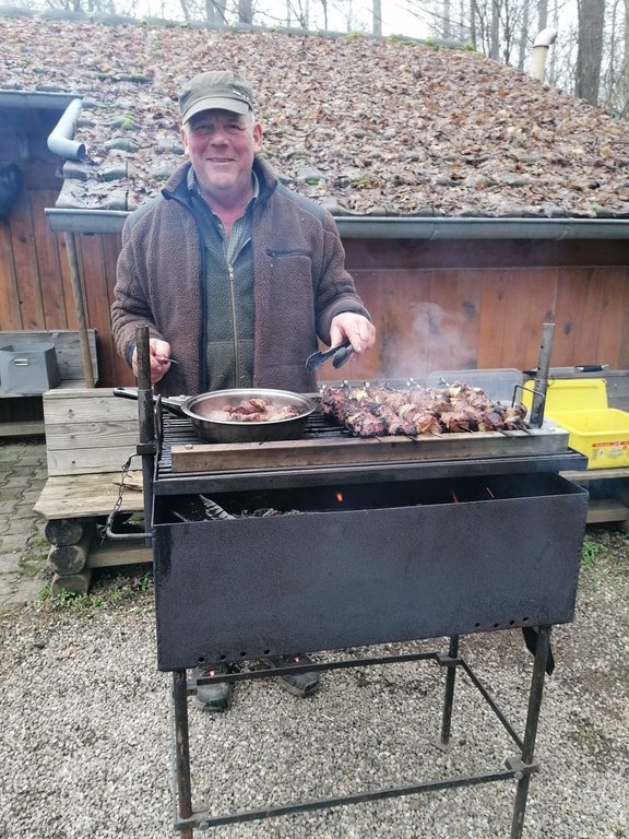 Grillmeister Thomas Sauer verwöhnte die Gruppe in diesem Jahr mit köstlichen Wildschweinspießen vom Grill. Ein herzliches Dankeschön an ihn sowie an alle, die mit Salat und Kuchenspenden zum Gelingen beitrugen.