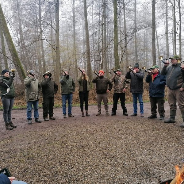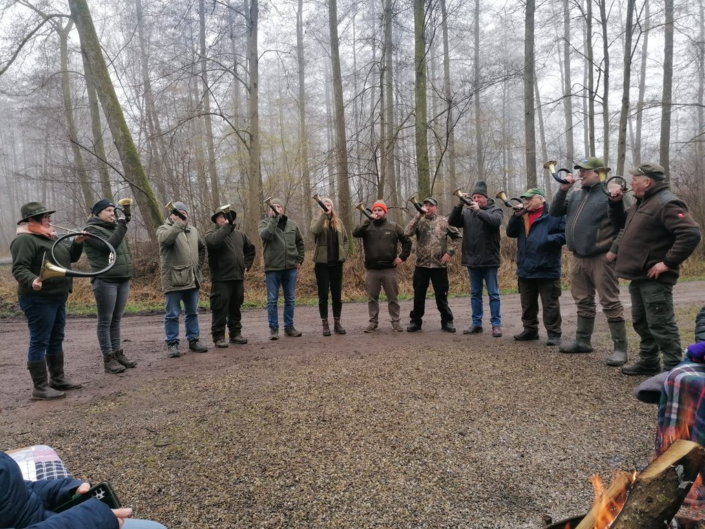 Mit jagdlichen Klängen sorgten die Bläserinnen und Bläser für die passende musikalische Atmosphäre, bevor der Nachmittag am Lagerfeuer gemütlich ausklang – inklusive eines kurzen Ausblicks auf Probenarbeit und Aktivitäten im neuen Jahr.